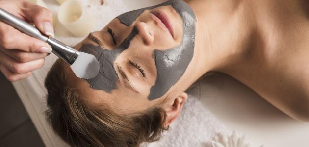 - وضع ماسك الطّين على الوجه، وتركه حتى يجف.