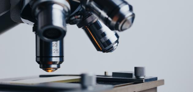 المجهر الضوئي يحتوي على عدستين لتكبير الأشياء.