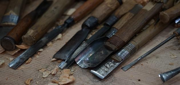 - سكين النحت، التي تستعمل في بداية العمل للنحت والتقطيع الرقيق، إذ تتكون سكين النحت من مقبض خشبي ونصل فولاذي مكربن.