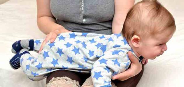 - لفّ الطفل ووضعه على ركبتي الأُم وقلبه على بطنه، ووضع يد الأُم تحت بطنه لتسهيل خروج الغازات.