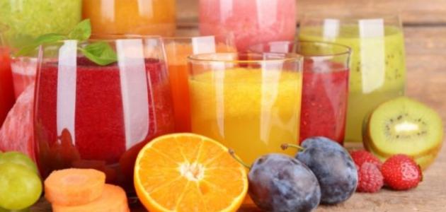 - عصير الفواكه: إن العصير الطّبيعي بشكلٍ عام أفضل من تناول أيٍ من العصائر الجاهزة بالأسواق؛ لأنّها تحتوي على كمياتٍ كبيرة من السكّر والمواد الحافظة، والعصير الطّبيعي يزويّد الجسم بالفيتامينات والمعادن من غير أن تفسد، ويُساعد على الحفاظ على رطوبة ونضارة البشرة.