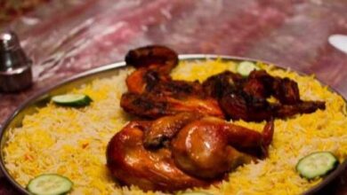 - تقديم دجاج المظبي بجانب الأرز والخضار، واللبن الزبادي.