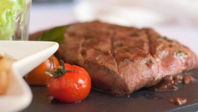 طهي اللحم لمدّة دقيقتين، ثمّ إضافة مرق الدجاج الغامق، مع مواصلة التحريك.