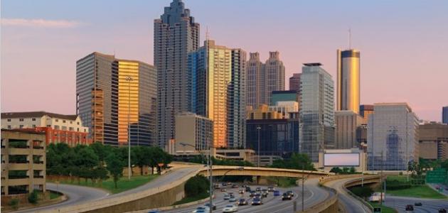 تتميز مدينة أتلانتا بالنمو السكاني المستمر والتطور التجاري السريع، كما تحتوي على أهم تقاطع والذي يدعى “النقاط الخمس”، والذي يضم مبنى البرلمان، والمباني الحكومية الأخرى، وصالة مدينة أتلانتا في الجهة الجنوبية الشرقية من النقاط الخمس، ويحتوي أيضاً على عدد كبير من المصارف والمستودعات وسلسلة من المكاتب، ويقع في الجهة الشمالية من هذا التقاطع مركز شجرة الخوخ، ومجمع الأعمال الذي يضم عدد كبير من الفنادق والمطاعم والمتاجر، كما يحتوي على عدة صالات مخصصة للأنشطة الترفيهية ولإقامة المؤتمرات.