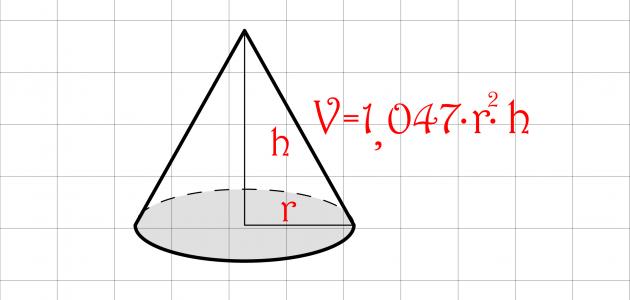 • حجم المخروط = (1/3)×π×نق²×ع، ولحسابه يجب إيجاد قيمة نق، وذلك كما يلي: