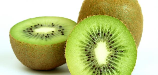 - الألياف الغذائيّة: يحتوي الكيوي على نسبةٍ جيّدةٍ من الألياف؛ إذ يُمكن لحبّةٍ مُتوسطة الحجم من هذه الفاكهة أن تزوّد الجسم بما يُقارب 10% من حاجته اليوميّة منها، ومن الجدير بالذكر أنّ الألياف تُعدّ من العناصر المُهمّة لتعزيز الهضم، كما أنّها قد تُساهم في تعزيز صحّة الأمعاء وتقليل مستويات الكوليسترول في الجسم.[٤][٥] وبالإضافة إلى محتوى الكيوي من الألياف فإنّه يتميز باحتوائِه على كميّاتٍ منخفضةٍ من السعرات الحراريّة، ممّا يجله من الفواكه المُناسبة للأشخاص الذين يتّبعون نظاماً غذائيّاً لخسارة الوزن، كما أنّ مذاقه الحلو يجعله مناسباً لهؤلاء الأشخاص عند الرغبة بتناول السكريات.[٦]