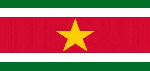 - اعتُمد علم سورينام في الخامس والعشرين من شهر تشرين الثاني عام 1975م بعد استقلالها، حيث يتألف من خمسة خطوط أفقية ذات ألوان: أحمر، وأبيض، وأخضر، هذا بالإضافة إلى نجمة في وسط العلم في اللون الأحمر.[٣]