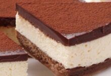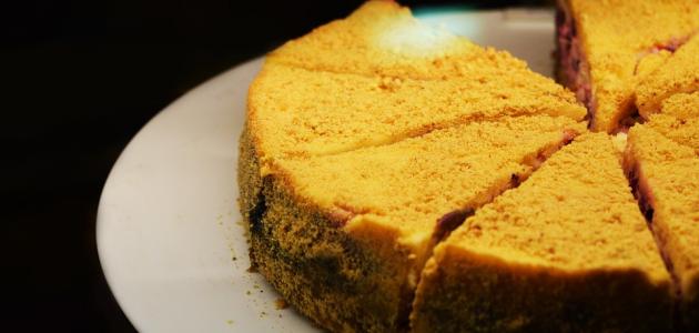 إدخال التشيز كيك إلى المجمد لمدّة ساعتين، ثمّ تغطيسه في الشوكولاتة الذائبة ورشّ الوجه بالفارمسيلي مباشرةً.