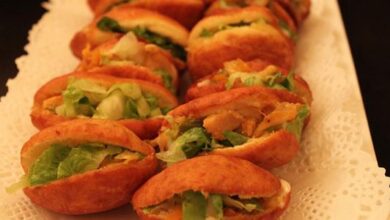 • نقسّم العجينة إلى عشر كرات، ونفرد كلّ كرة من دوائر العجينة إلى دائرة عن طريق استخدام النشّابة.