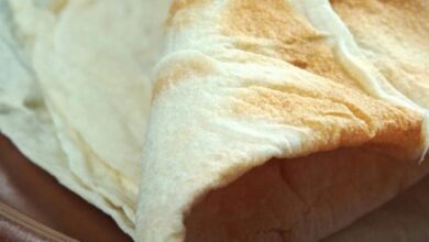 • نفرد العجينة ونرقّها إلى أن تصبح كالرقاق، ونضعها على الصاج حتّى تُخبز، ونقلبها على الجهتين إلى أن تتحمّر قطع الخبز.