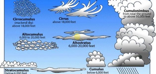 • السحب المنخفضة الارتفاع: وتظهر في الشرق الأوسط على ارتفاع يقل عن 2 كم عن سطح الأرض، ومن أصنافها الركام المزني، والركام والطبقي.
