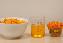 - يُذوّب زيت جوز الهند وزبدة الشيا على النار.