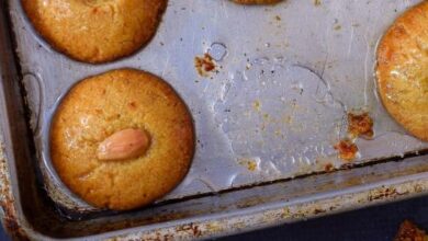 - نضع قطع العجين في صينية خبز، ثمّ نُحدث شقوقاً على وجهها باستخدام السكين.