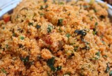 • ضعي الكينوا المطهوّة في وعاء كبير وحرّكيها بواسطة الشّوكة.