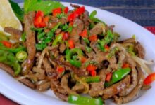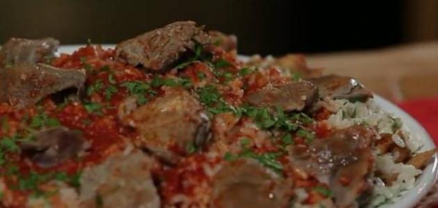 - نضع طبقة ثالثة من اللحم، ونراعي أن نوزعها على كل سطح الفتة، ولا تتجمع في مكان واحد.