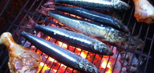 • نحشي السمك بالتتبيلة، ثمّ نضعُه على شبكٍ خاصّ للشوي على الفحم.