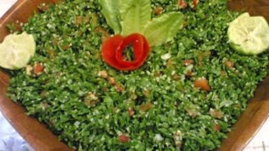 - تقديم السلطة على شكل قبة، وتزيينها بالبيضة المتبقية والمُقطّعة إلى أرباع، وكذلك تزيينها بشرائح الليمون، والطماطم.