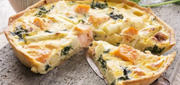 - توضع صينية الكيش في فرن حامي لمدة نصف ساعة أو حتى يتم الحصول على لون ذهبي.