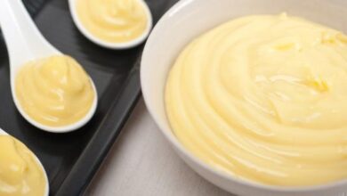 - نذوّب النشا بكمية قليلة من الحليب البارد، ثم نصبه على كمية الحليب كلها، ونحرّكه جيداً حتى يتمازج الخليط معاً.