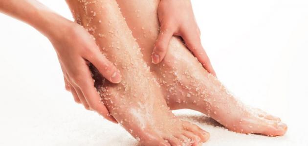 - لَبْس الجوارب مع مراعاة تثبيتها عند الكاحل لئلا تتسرب المواد المقشرة منها إذا كانت الساقين نحيليتين.