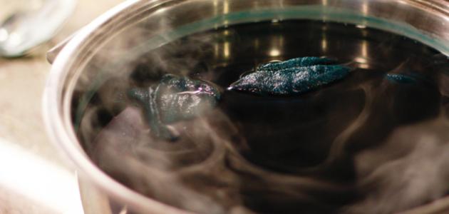 - وضع القماش في الصبغة الناتجة وتركه مدّةً كافية ؛ ليكتسب اللون المطلوب.