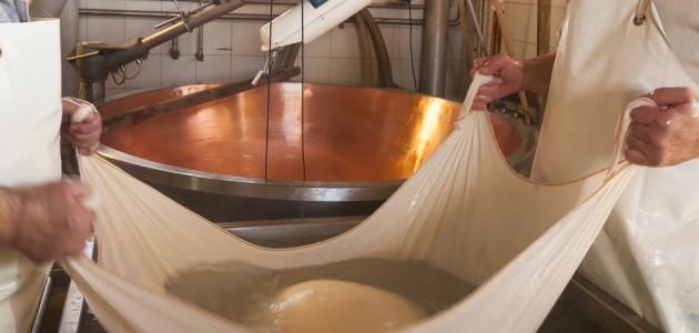 - استمرّي في التّقليب حتّى يتخثّر كامل الحليب، وقومي بانتشال الحليب في مصفاة السّلك، وقومي بوضعه في قطعة الشّاش النّظيف، واحرصي على أن تضعي وعاءً مجوّفاً أسفل قطعة الشّاش ليتجمّع بها المصل الزّائد.