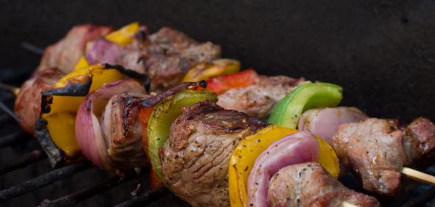 - نضع مكعّبات اللحم في أسياخ خشبيّة، ثمّ نشويها على الفحم إلى أن تنضج.