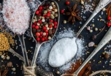 - أربعة ملاعق كبيرة من الملح؛ ملعقتان للبصل، وملعقتان للثّوم.