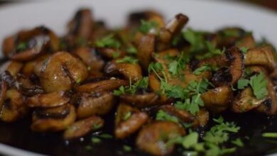 تزيين الطبق بالكزبرة وتقديمه مع الخبز وتقديمه ساخناً.