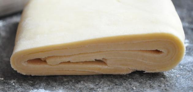 - نطوي العجينة على ثلاثة أقسام، ثم نمدّها مرة أخرى، ونعيد الكرة خمس مرّات.