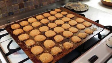 • أخرجي الكحك من الفرن واتركيه حتَّى يبرد، ثمَّ رشّيه بسُكَّر البودرة، وقدّميه.