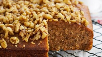 - أخرجي الصّينيّة من الفرن، واتركيها لمدّة عشر دقائق، ثمّ أخرجيها من الصّينيّة على رفٍّ شبكي. عندما تبرد الكيكة تماماً زيّنيها بأيّ تغليفة ترغبين بها، وقدّميها مع الشّاي.