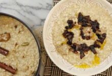 • سكب مرقوق اللحم والخضار في طبق التقديم.