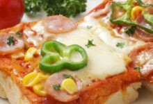 • حبة مقطعة إلى مربعات صغيرة من كلّ من: الفليفلة الخضراء، والحمراء، والصفراء.