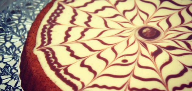 - يسكب المزيج على سطح تارت البسكويت ويزين بخطوط من شوكولاتة النيوتيلا.