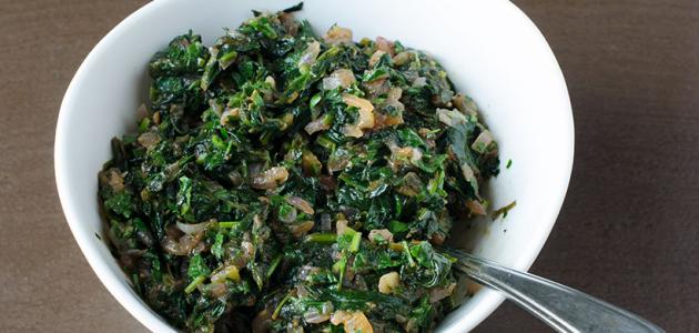 - نضع السبانخ في وعاء عميق، ونضعه على درجة حرارة متوسطة، حتى يذبل، ثم نصفيه من الماء بشكلٍ جيد، ونضعه في وعاء عميق، ونضيف إليه السماق، والبصل، والزيت النباتي، والفلفل، والشطة، والملح، ونخلط كافة المكونات بشكلٍ جيد.