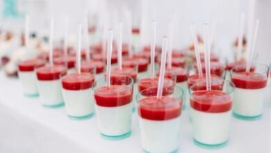 - نضع القالب مرّة أخرى في الرف الأعلى من الثلاجة لمدّة أربع ساعات لكي يتماسك الجلي ويجمد.