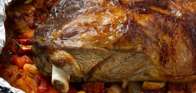 - يلفّ الخروف بالقصدير ويوضع في صينية تحوي القليل من الماء حتى لا يَحترق الخروف.