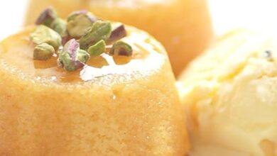 • نخرجها من الزيت ثم نضعها مباشرة في القطر البارد ونقلبها لمدة دقيقتين تقريباً حتى تتشرب كمية من القطر.