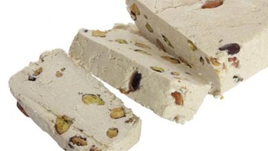 - نحضر الصلصة، نخلط الحليب المحلى بالطحينة، ثم نسخنها على نار هادئة، حتى تختلط المكونات ويغلظ قوامها.