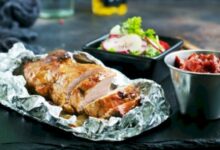 - ندخل الصينية في الفرن، ثم نشعله على درجة حرارة 180 درجة مئوية، ونتركها لمدة نصف ساعة، على نار هادئة حتى تنضج بشكل كامل، مع المراقبة والتقليب حتى لا تحترق أو تلتصق بالصينية.