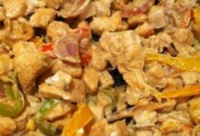 - أربع قطع كبيرة من فيليه الدّجاج، مُقطّع إلى مكعبات صغيرة.