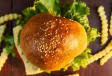- خبز صمون كبير، خس مفروم، شرائح طماطم للتقديم.