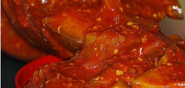 - يُعبأ مخلّل المانجو في وعاءٍ زجاجيّ محكم الإغلاق ويُحفظ في الثّلاجة لحين الاستخدام والتّقديم.