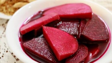 - أضيفي كمية المانجو الخضراء إلى المكوّنات السابقة بعد تصفيتها من ماء النّقع، ثم اغمري المكوّنات السّابقة بكوبٍ من الماء.