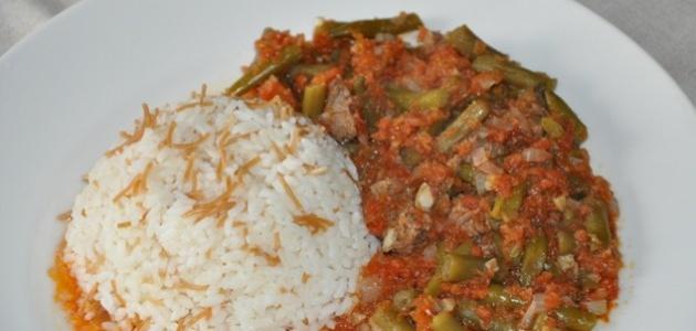- أصبحت يخنة الفاصولياء الخضراء جاهزة، نقدّمها مع الأرز الأبيض المُفَلفَل، أو الأرز مع الشعيرية وهي ساخنة.