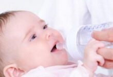- يمكن الاستمرار بإعطاء الرضيع كميات قليلة من حليب الأم أو الحليب الصناعي.