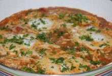 - اسكب صلصة الحمص المهروس فوق الخبز المحمص والمشرب بالماء، واسكب فوقها خليط اللبن ووزع اللحم المفروم المقلي وزينها بالصنوبر والسمن المستخدم لقلي الصنوبر والبقدونس المفروم.