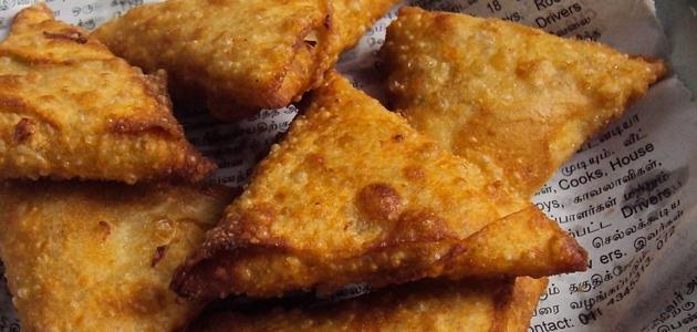 • قلي السمبوسك في زيت نباتي متوسط درجة الحرارة لتصبح ذهبية اللون ثم تصفتها.