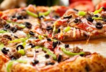 - ترك البيتزا تبرد ثمّ تزيينها بصلصة الفواكه والفراولة.